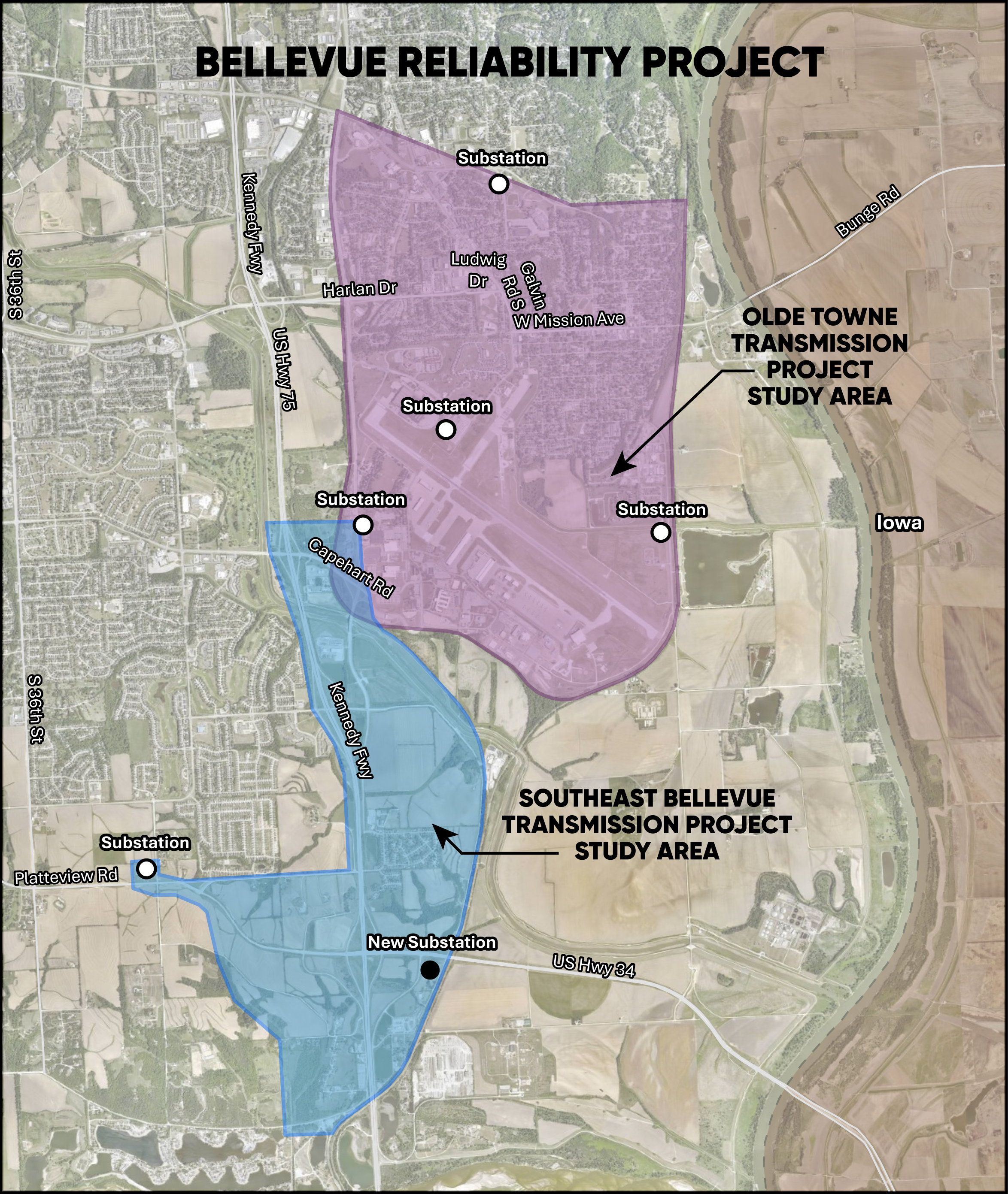 OPPD plans to rebuild transmission, upgrade or expand five substations and build one new substation in the eastern and southern parts of Bellevue to support community growth and reliability. Routing and siting efforts will begin this year, with project completion over the course of several years.